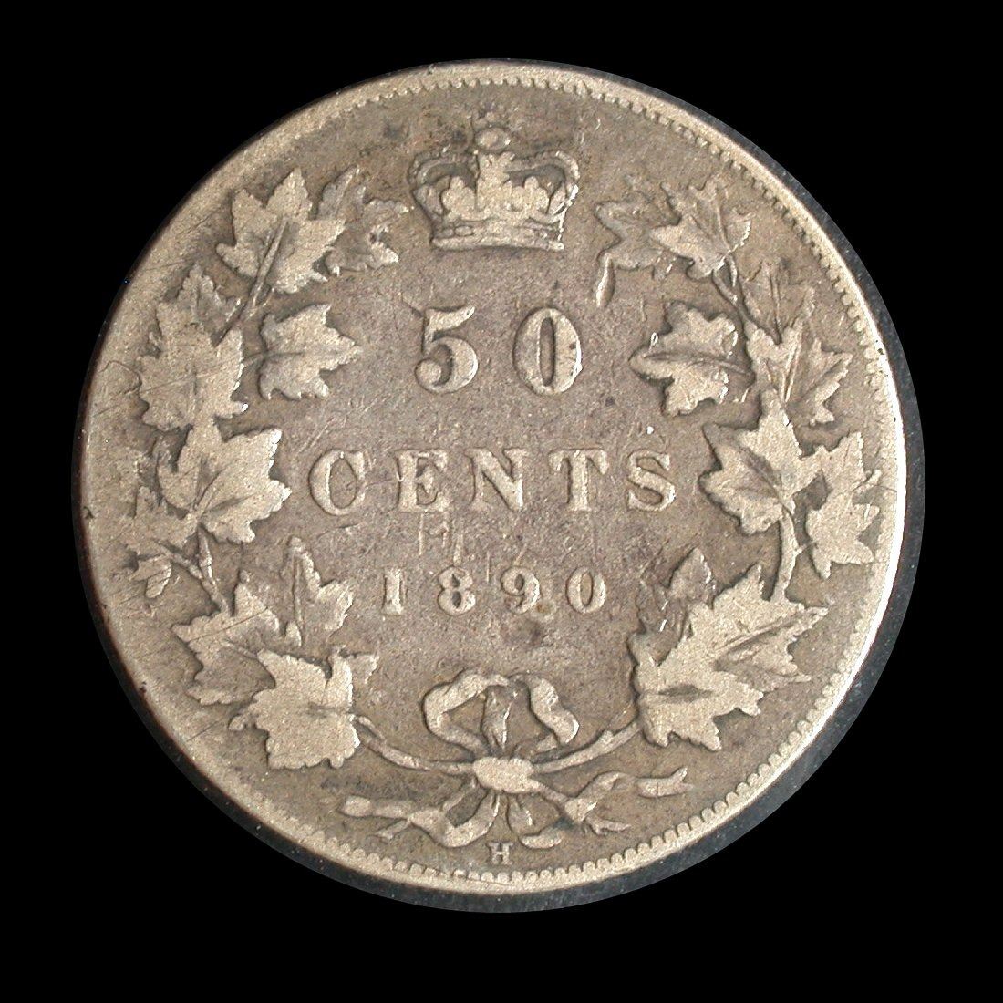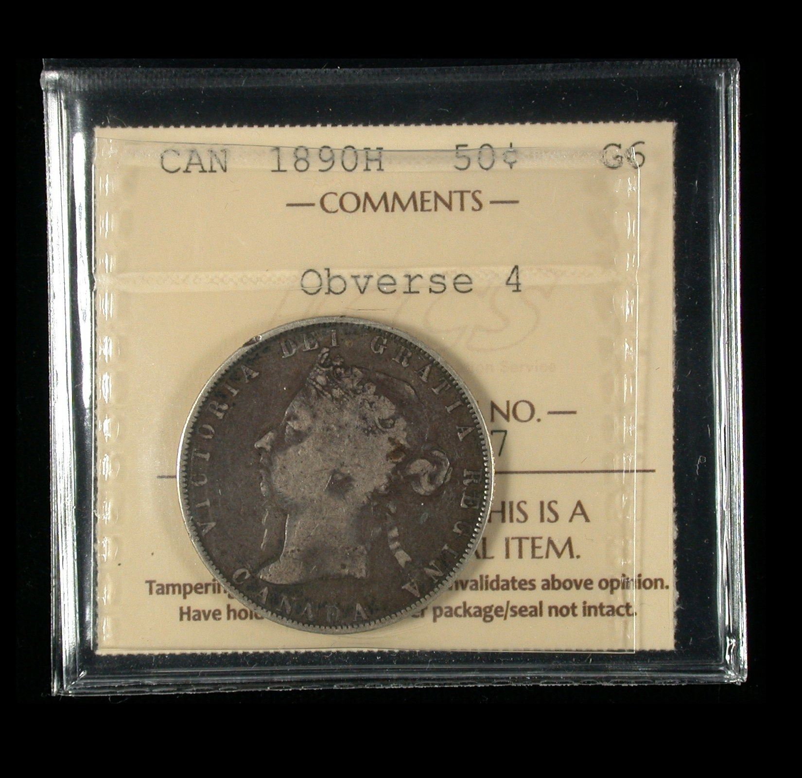 Canada Fifty Cents 1890H Obverse 4, ICCS Good-6 with even medium toning and bold date and legends. A wholesome, solid example of this classic Victorian rarity