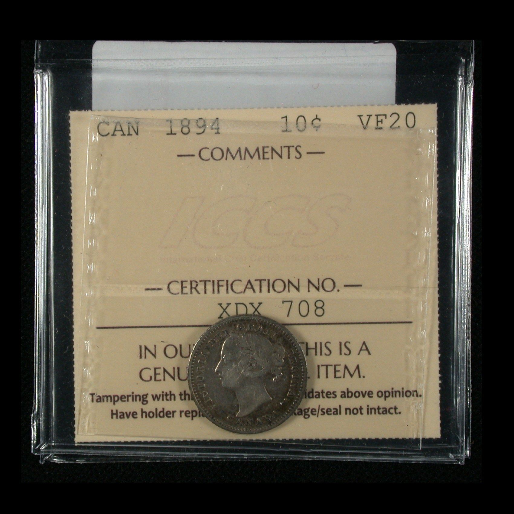 Ten Cents 1894, ICCS VF-20, nicely-toned