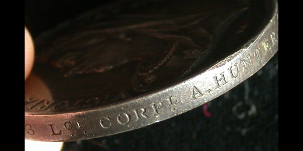 An 1895 India General Service Medal of Victoria (36mm), disc only with suspension clasp removed, edge-impressed "2603 LCE CORPL A. HUNTER 2 / K.O. SCO : BORD:". Pleassantly-toned VF.