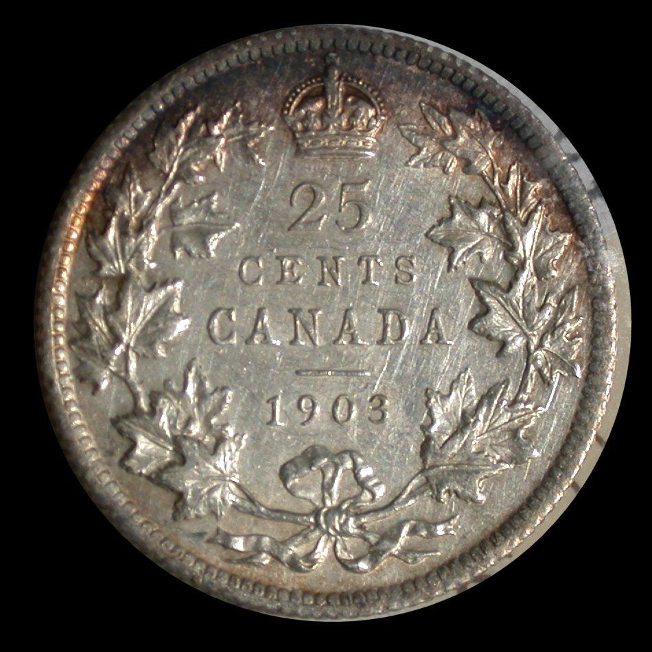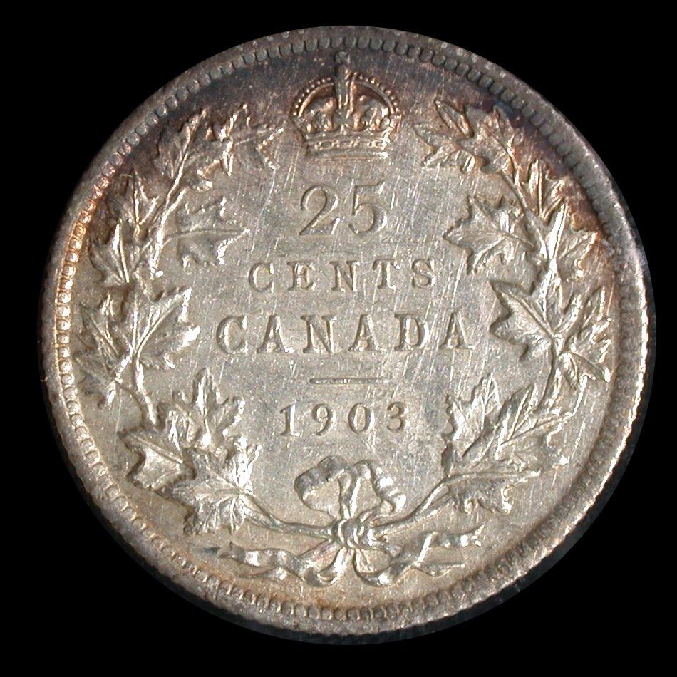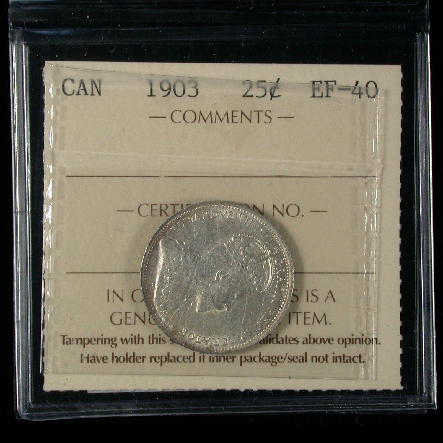 Twenty-five Cents 1903, ICCS EF-40 with just a touch of light toning over white surfaces