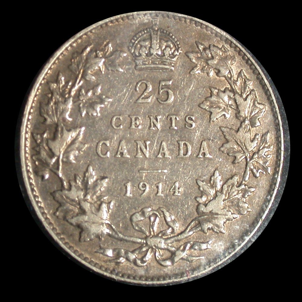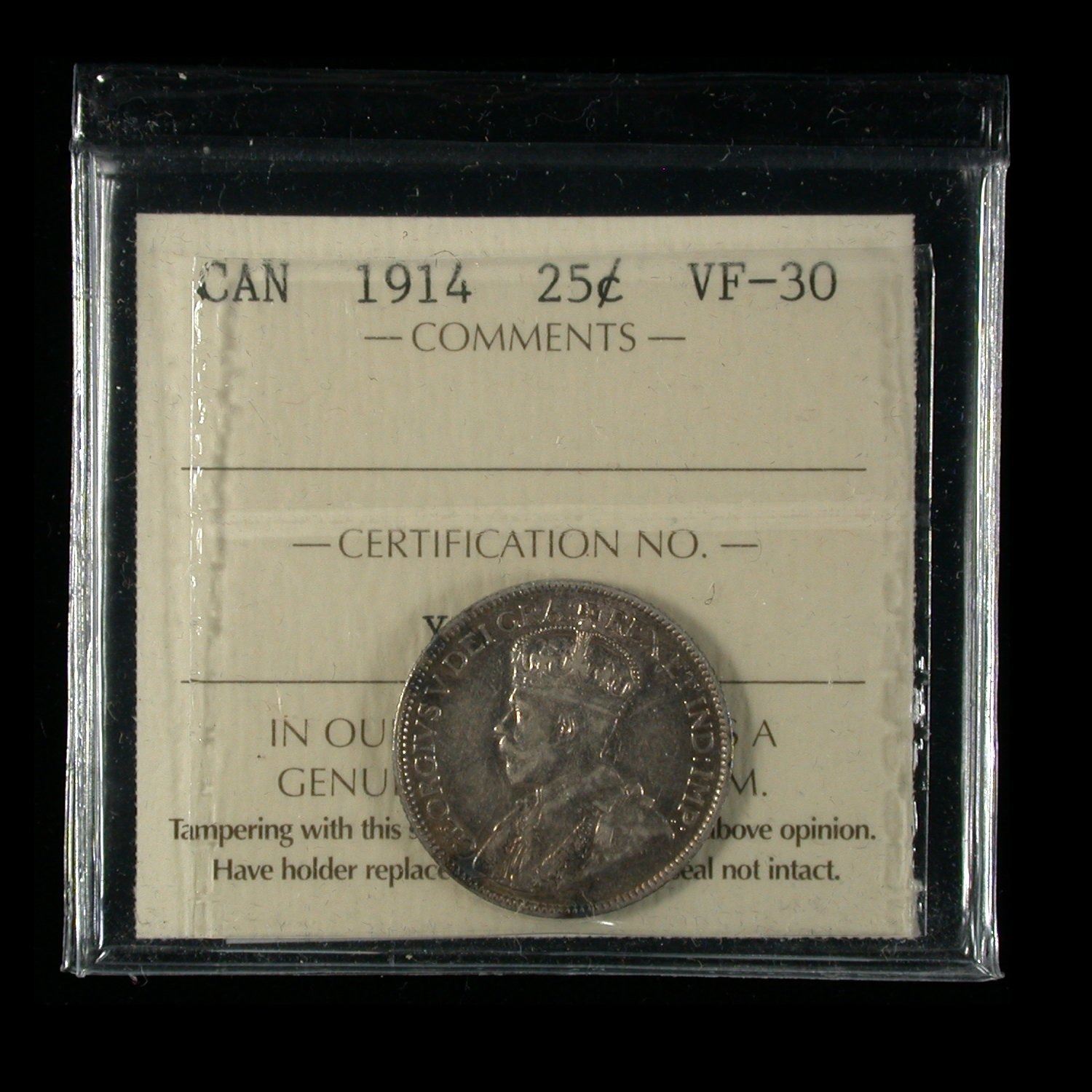 Twenty-five Cents 1914, ICCS VF-30 with even medium toning