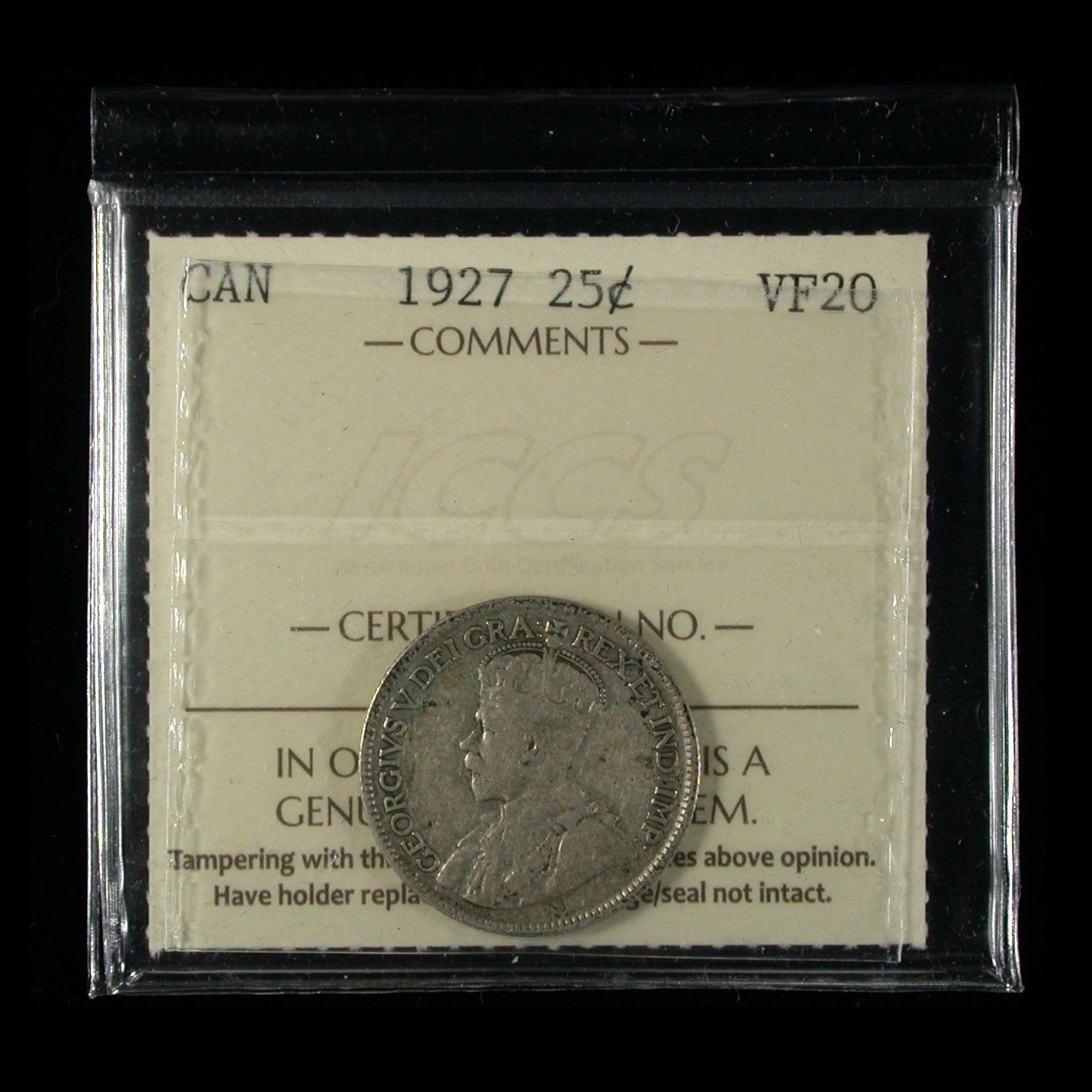 Twenty-five Cents 1927, ICCS VF-20, lightly-toned, with strong date