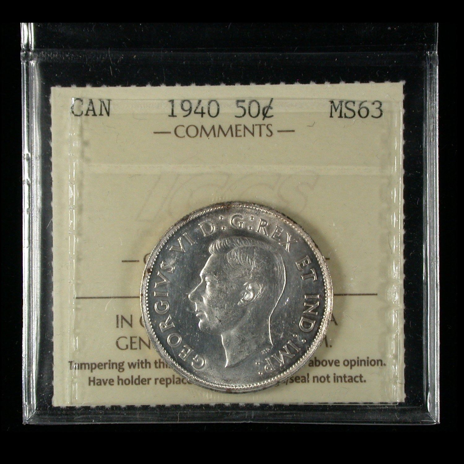 Fifty Cents 1940, ICCS MS-63 with quite light golden-pink toning