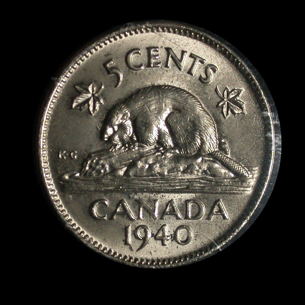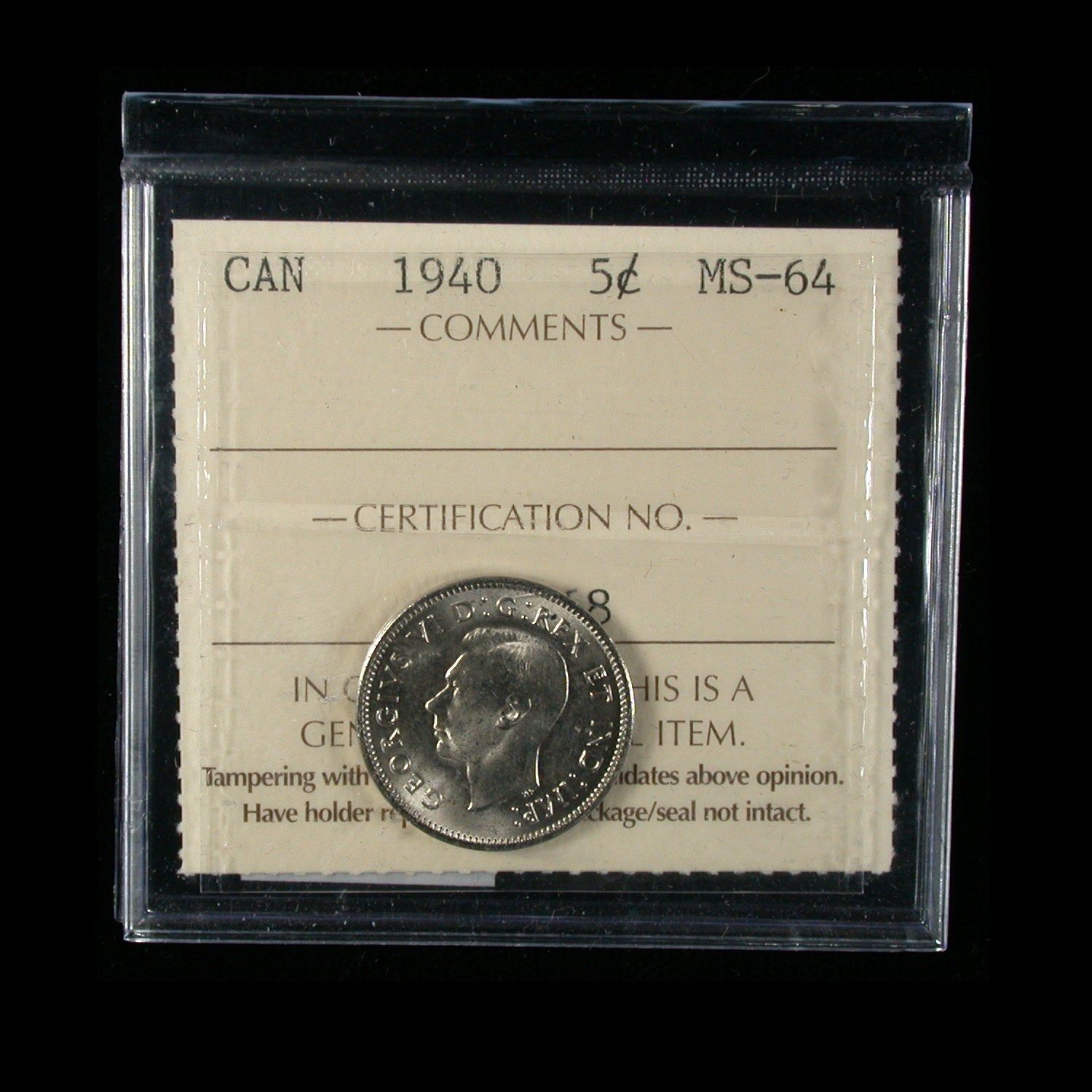 Five Cents 1940, ICCS MS-64 with nice lustre