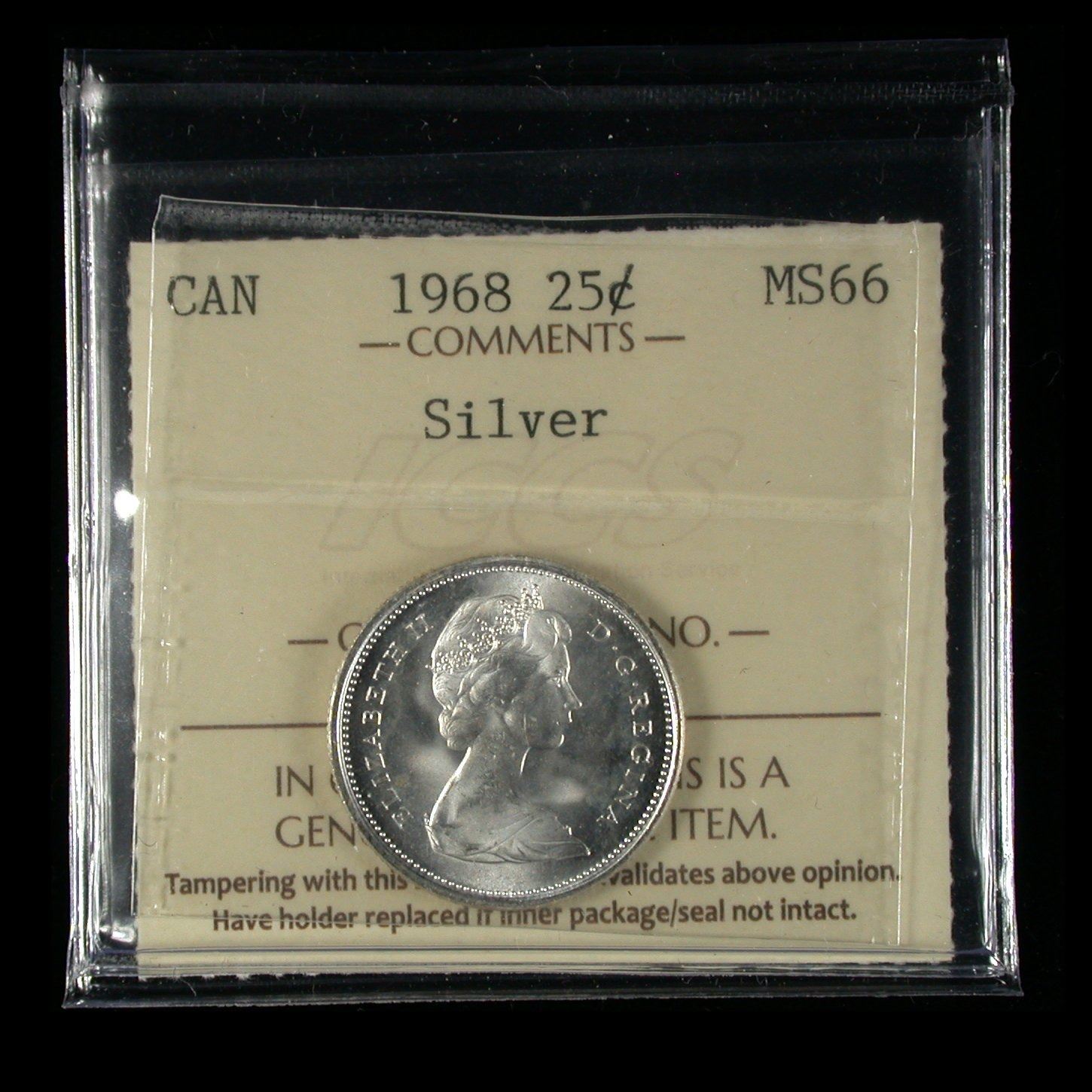 Twenty-five Cents 1968 in Silver, ICCS MS-66 and a choice example with milky, satin fields