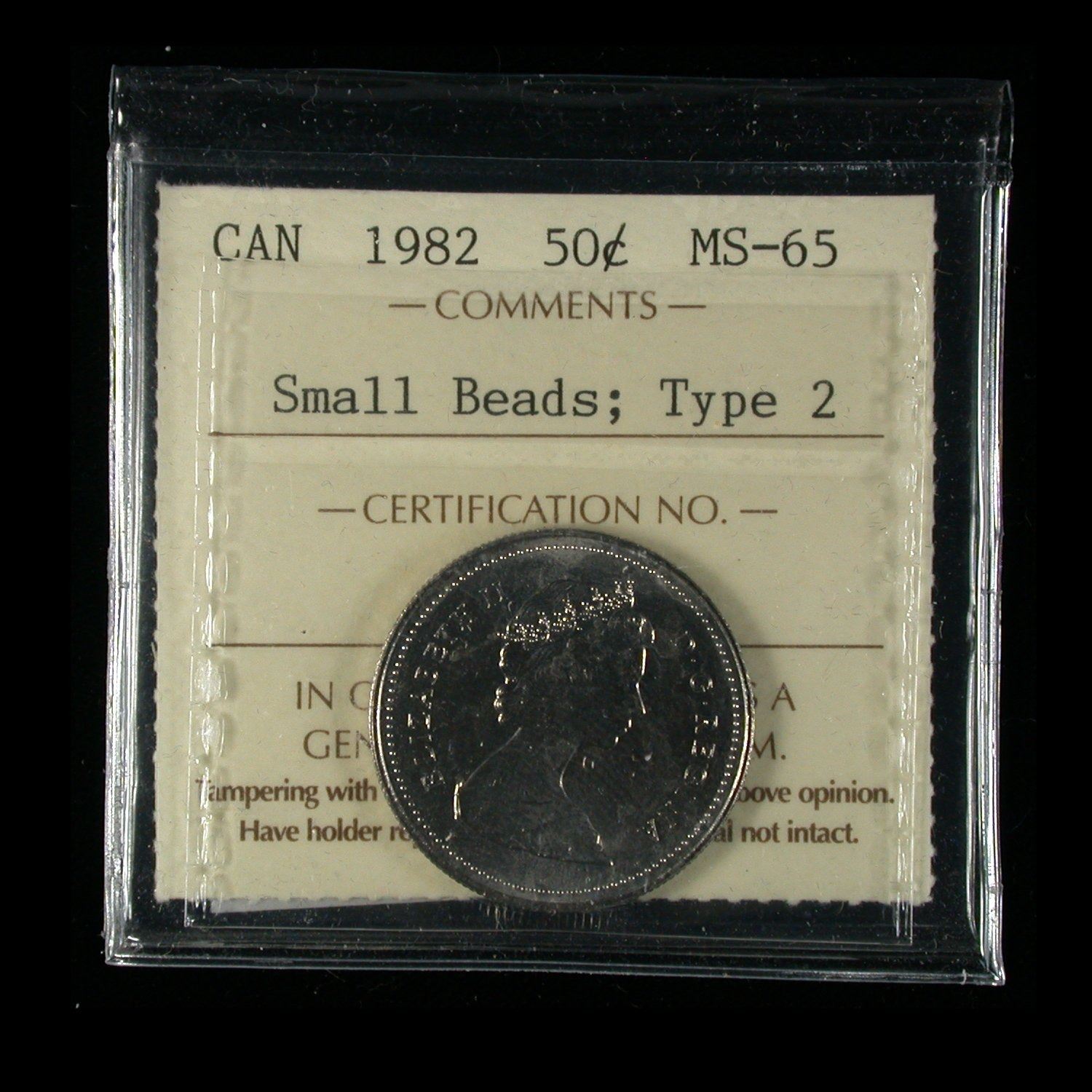 Fifty Cents 1982 Small Beadds, Type 2; ICCS MS-65
