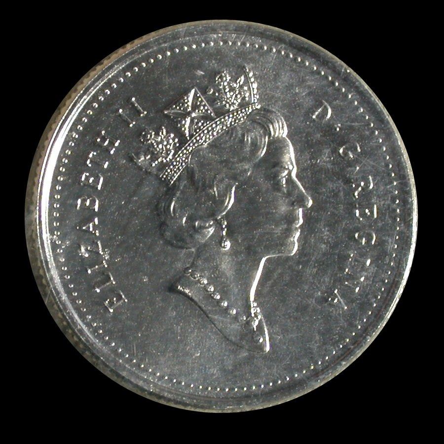 A 1999 "September" Twenty-five Cents, Mule variety with no denomination on obverse. ICCS MS-67 NBU, and a choice example