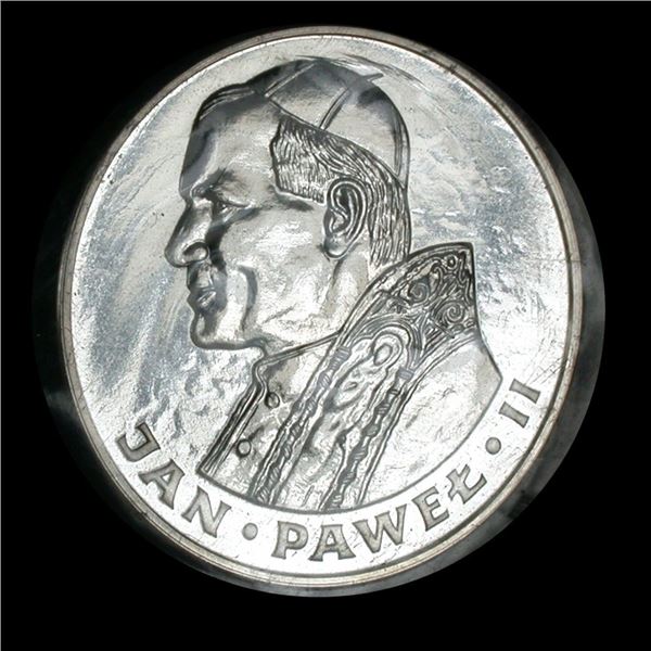 100 Zlotych of 1982 struck in .750 Silver (KM.136), issued to commemorate the 1983 visit to Poland of native son Pope John Paul II. BU, housed in ori