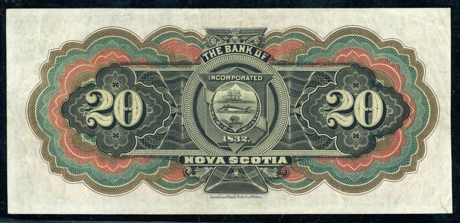 Bank of Nova Scotia Twenty Dollars 1918, Archibald right (Ch.550-28-16), #193249, BCS EF-45 with notation of a Minor Tear. A solid, attractive note, and very likely among the top surviving examples