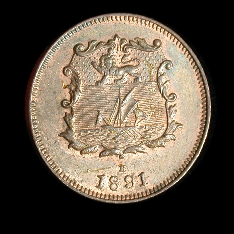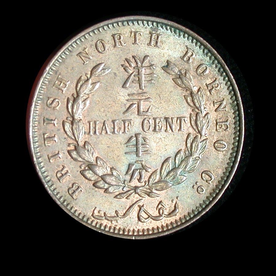 An 1891-H Half Cent of British North Borneo (KM.1), Red & Brown UNC, with nice traces of lustre. A couple quite minor traces of adhesive residue on date-side should be removable