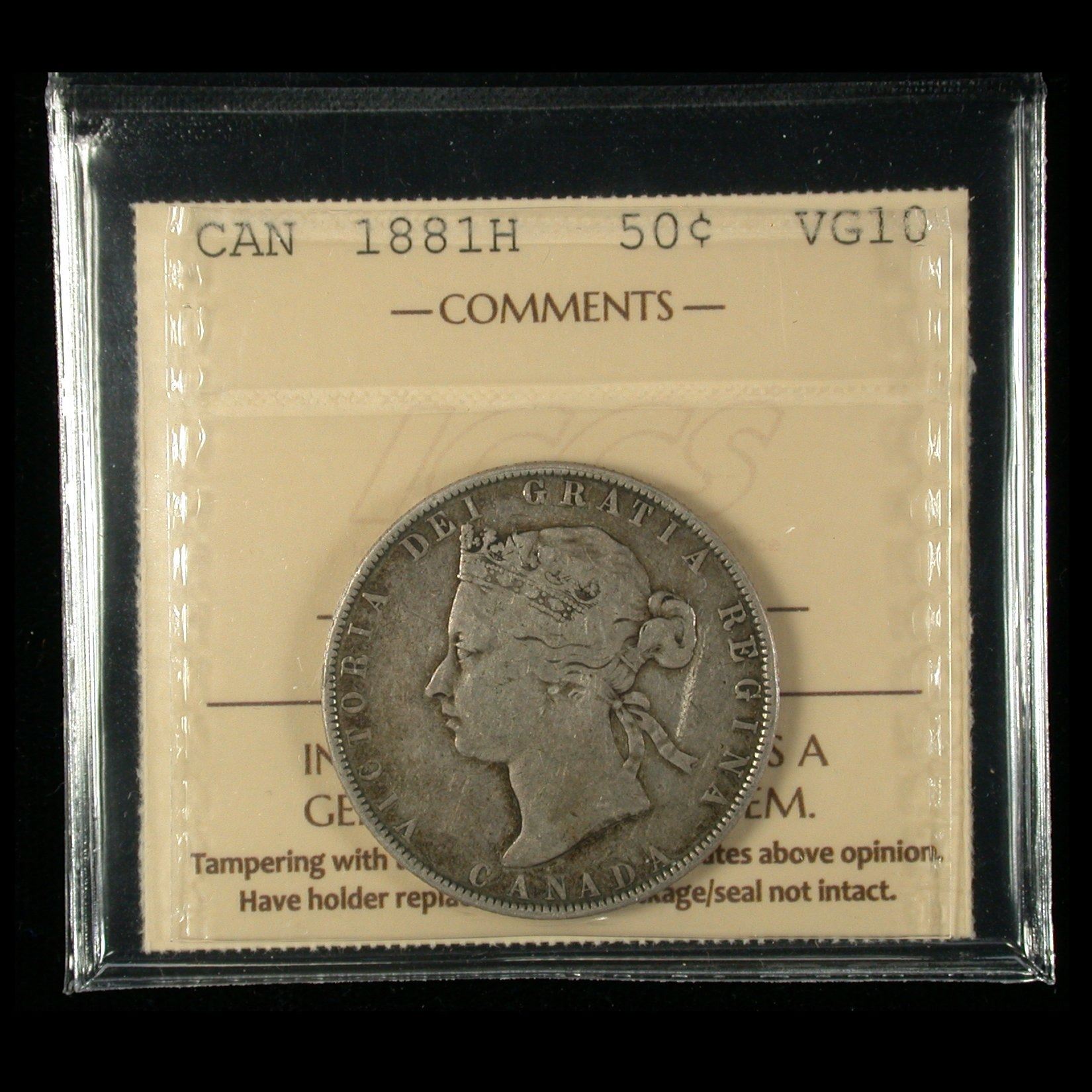 An 1881H Half Dollar of Victoria, ICCS VG-10 with pleasant even grey toning, and fully-bold date & denomination