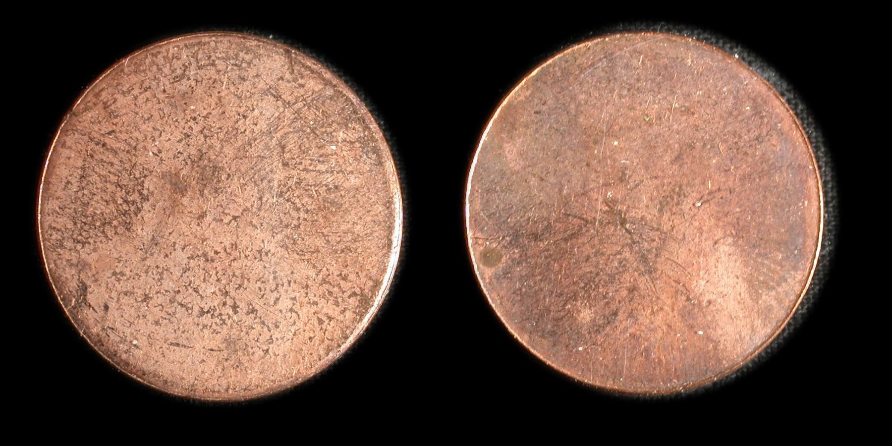 A 21mm, 6.07g copper Type 1 blank for the "Strike Your Own" copper medals of the Royal Canadian Mint, used from 2009 onwards
