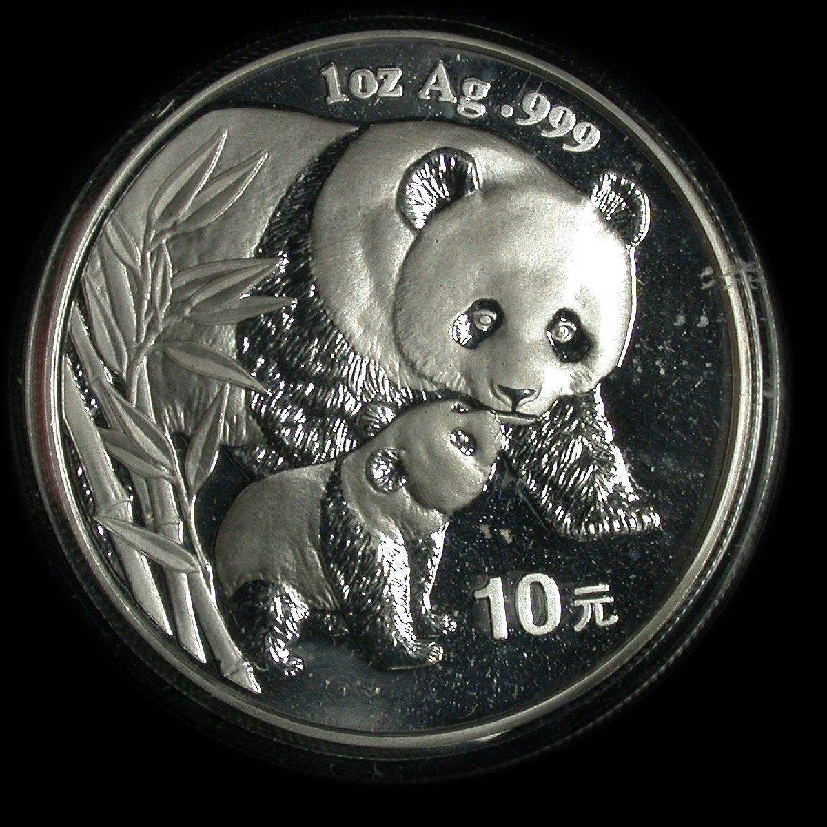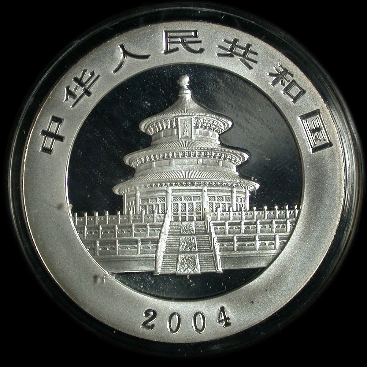 A 2004 one ounce .999 Silver Panda of China, with face-value of 10 Yuan, BU and still sealed in original capsule and outer plastic sleeve. (this item is HST-exempt within Canada0