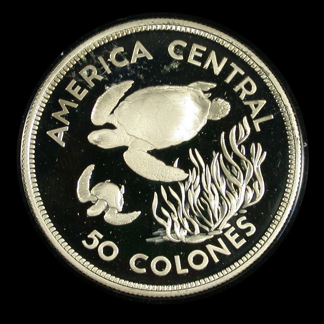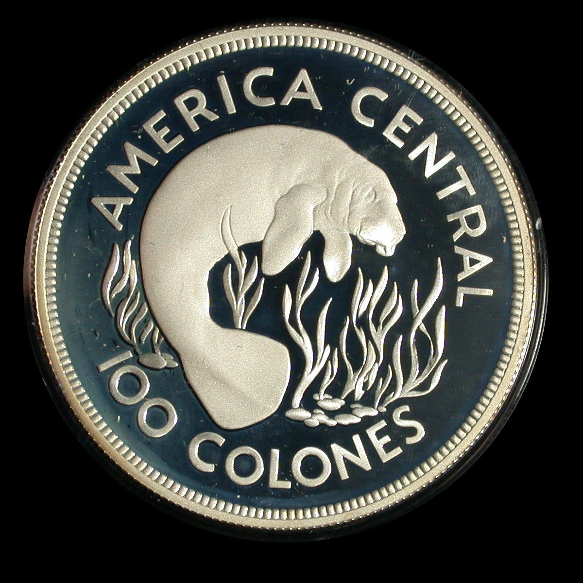 A lot of two 1974 Costa Rican Proof Silver crowns from the Wildlife Conservation series, consisting of: 50 Colones Green Turtle (KM.200a), together with 100 Colones Manatee (KM.201a). Both Proof Sterling Silver, housed in original capsules. (Lot of 2 coins)