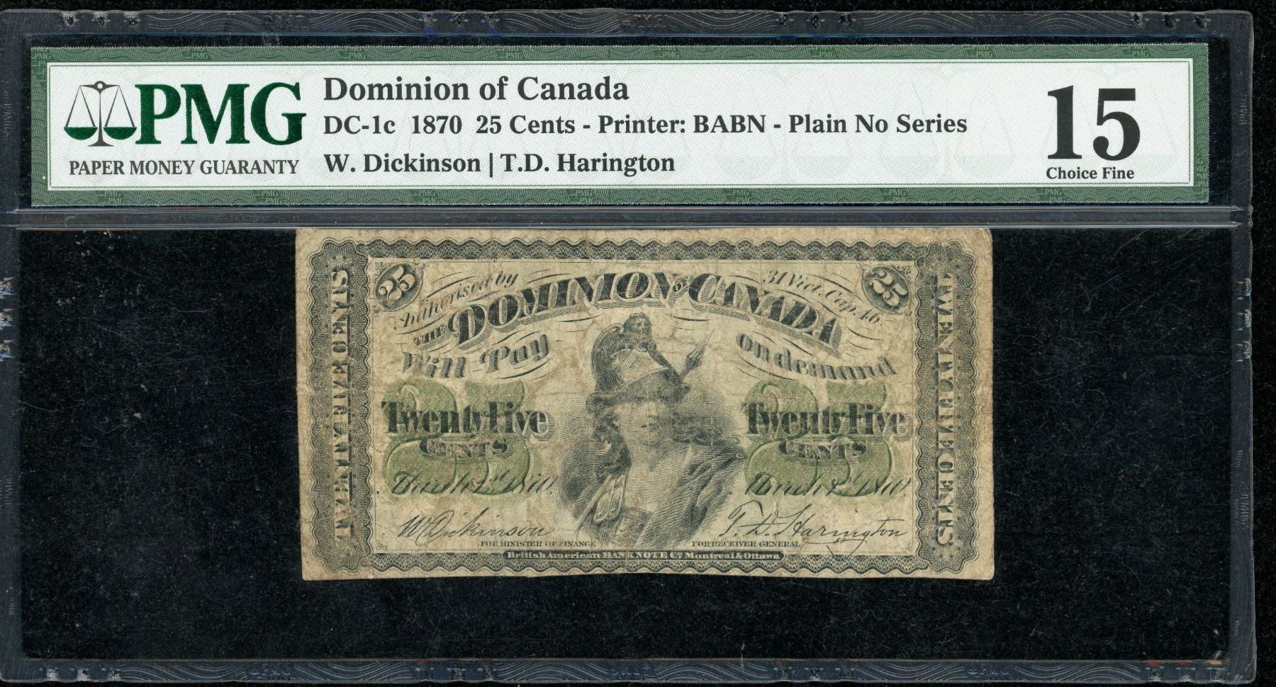 Dominion of Canada Twenty-five Cents 1870 (DC-1c), PMG Fine-15
