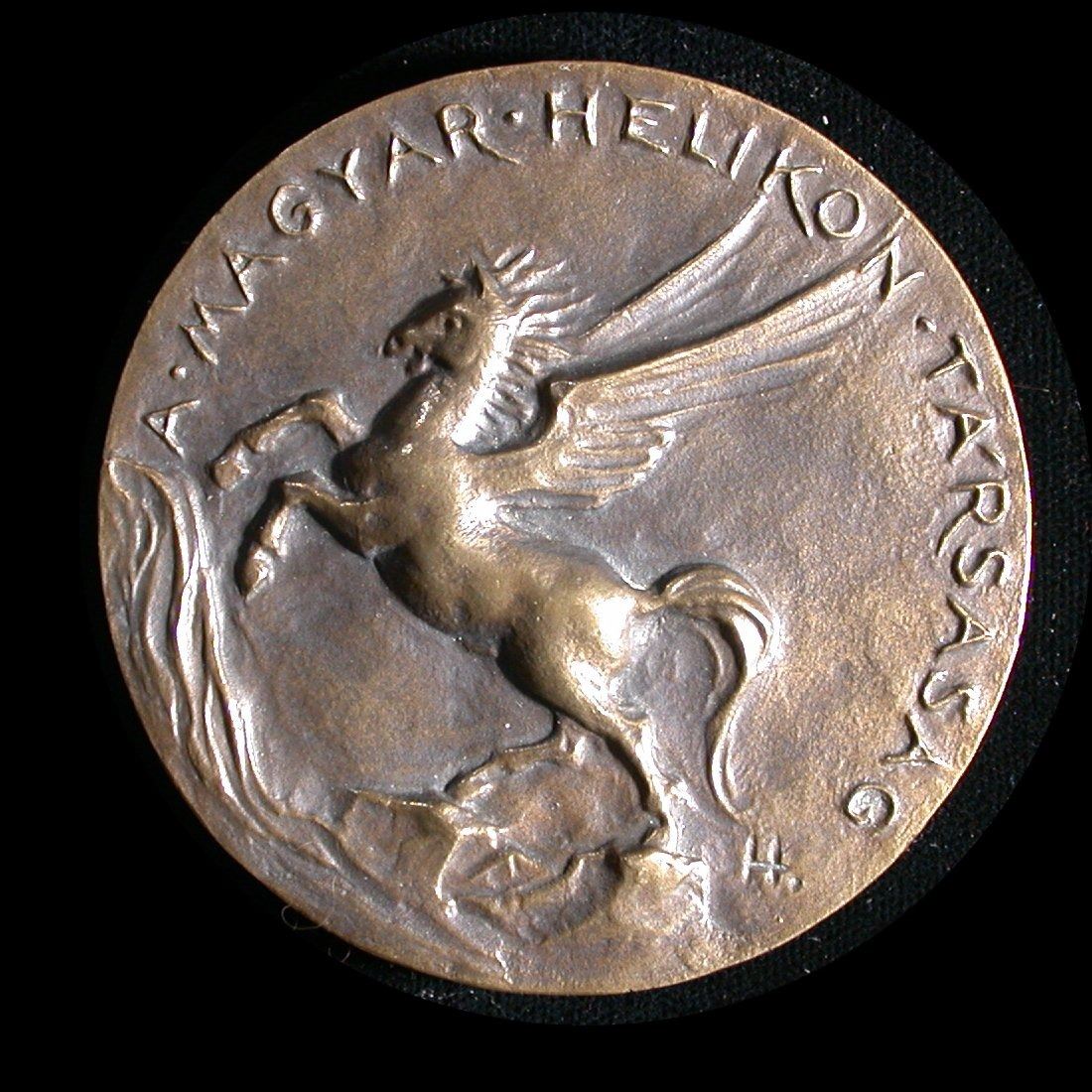 A 65mm heavy bronze medal by Dora De Pedery-Hunt, issued to commemorat the 1976 25th anniversary of the Toronto-based Hungarian Helicon Society. Founded by Hungarians who immigrated to Canada after WWII, the society was founded to preserve and promote Hungarian heritage, as well as to introduce Canadians to Hungarian culture and history. Rev. winged horse rearing left, Obv: crest of the Helicon Society at center, "KANATA" above, around upper rim, "1951 / 1976" to left and right, "TORONTO" below. AU/UNC, and no doubt a labor of love by the Hungarian-born Hunt