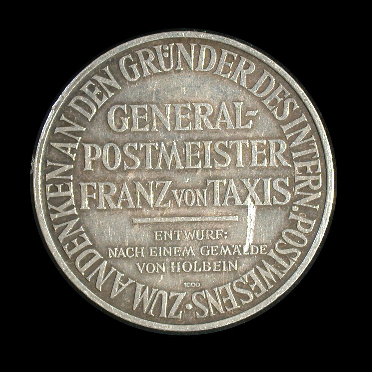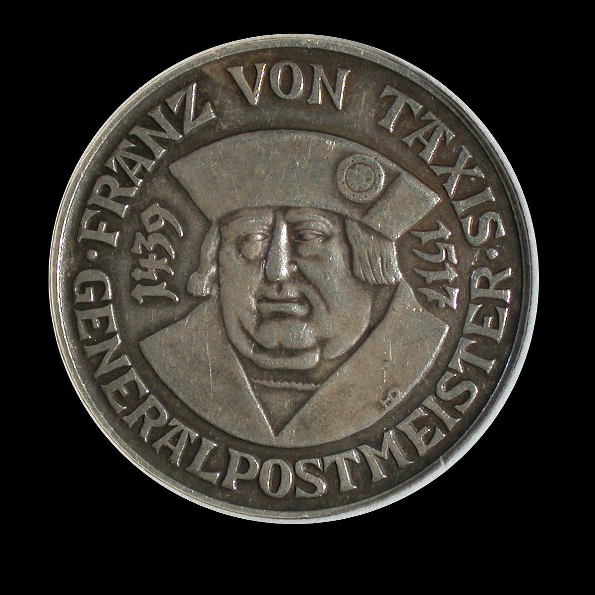 A 40mm, 24.7 gram medal in .999 Silver, issued to commemorate the late 15th century German civil servant Franz Von Taxis, generally considered to be the inventory of the Post Office. Date uncertain, however based on design and appearance, possibly issued for the 500th anniversary of Taxi' birth in 1939. A great piece for the collector of original postal system history