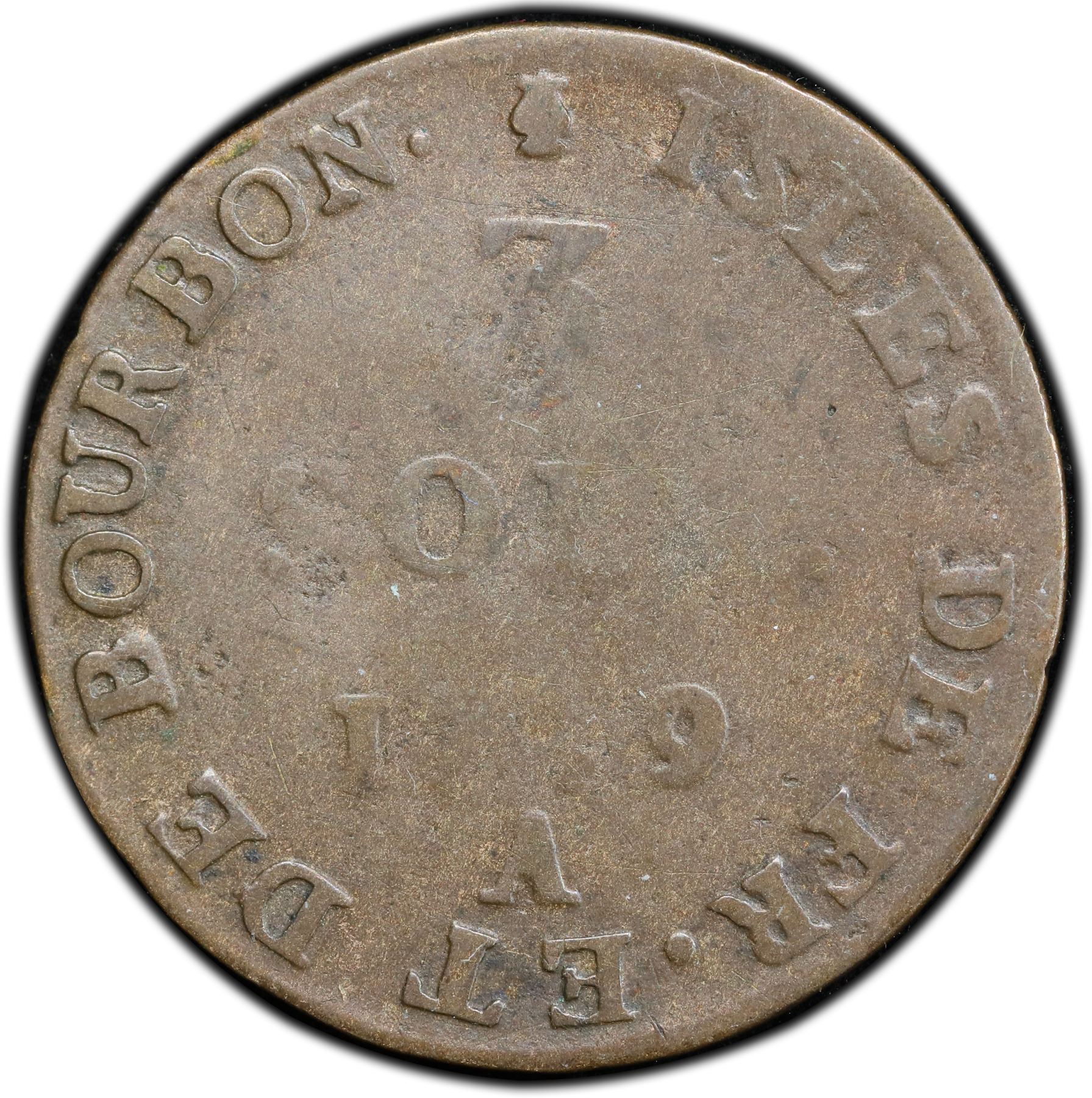 A 1779-A Three Sols of the Isles of France & Bourbon, Louis XVI (KM.1). PCGS VG-10, and an elusive denomination