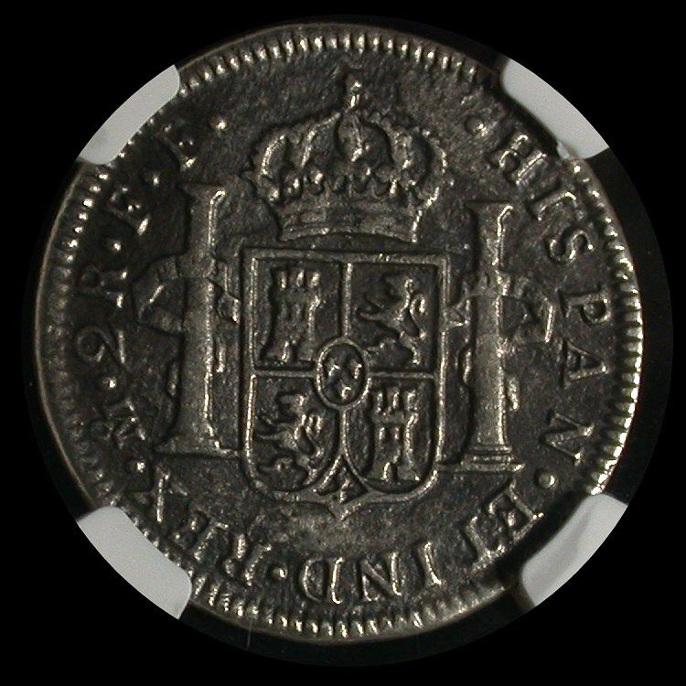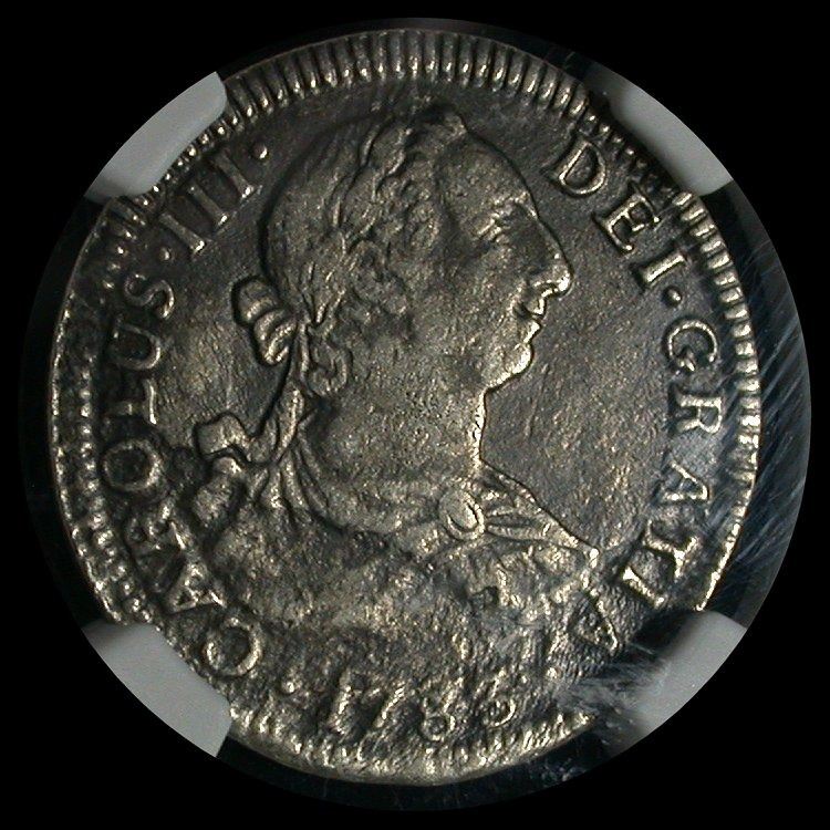 Mexico 1783-Mo,FF Two Reales of Charles III, NGC certified "Genuine" with sharp legends. Recovered from the Spanish ship El Cazador in 1993, in the Gulf of Mexico. With accompanying certificate