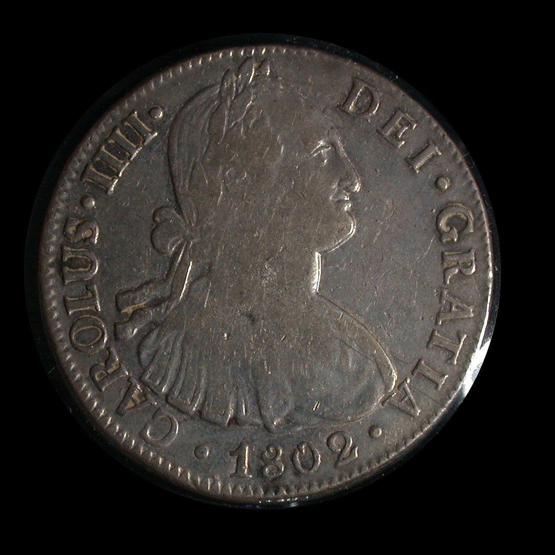 A Silver 8 Reales 1802-FT/M of Charles IV (KM.109); gFine, nicely-toned, with bold date and legends