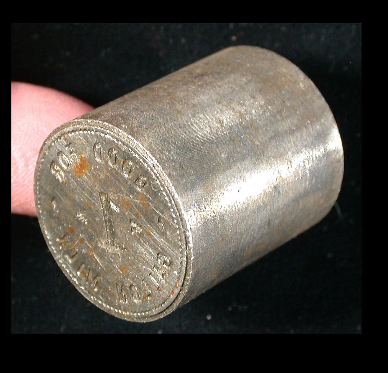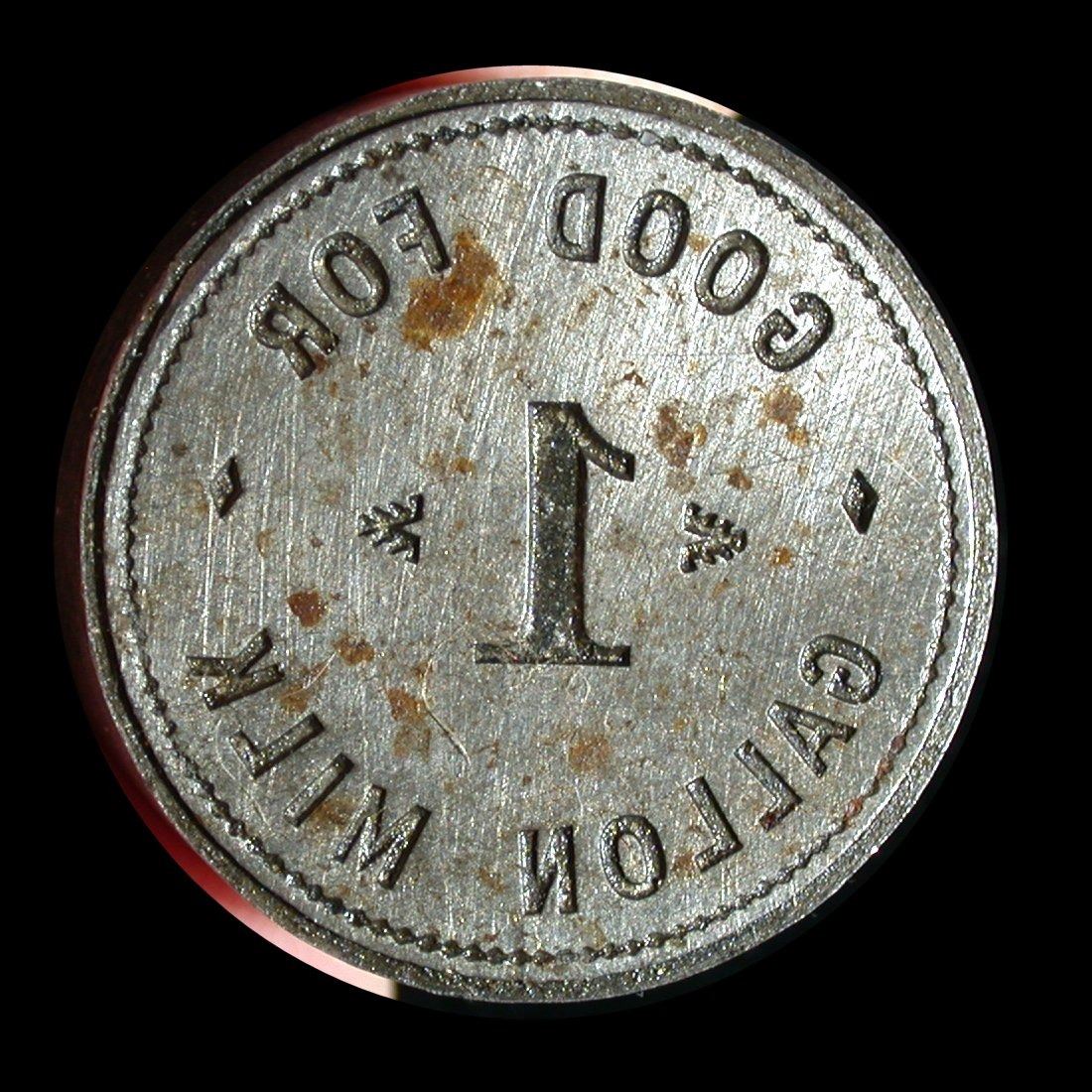 An original steel die for the striking of a larger 30mm round "Good For 1 Gallon Milk" token, measuring 34mm in height. An excellent lot for the milk token enthusiast!