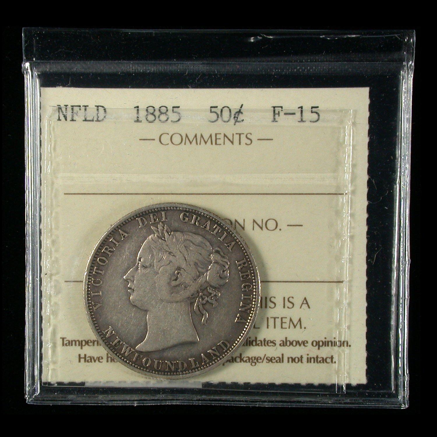 An 1885 Fifty Cents of Newfoundland, ICCS Fine-15 with light even toning and fully bold date and legends