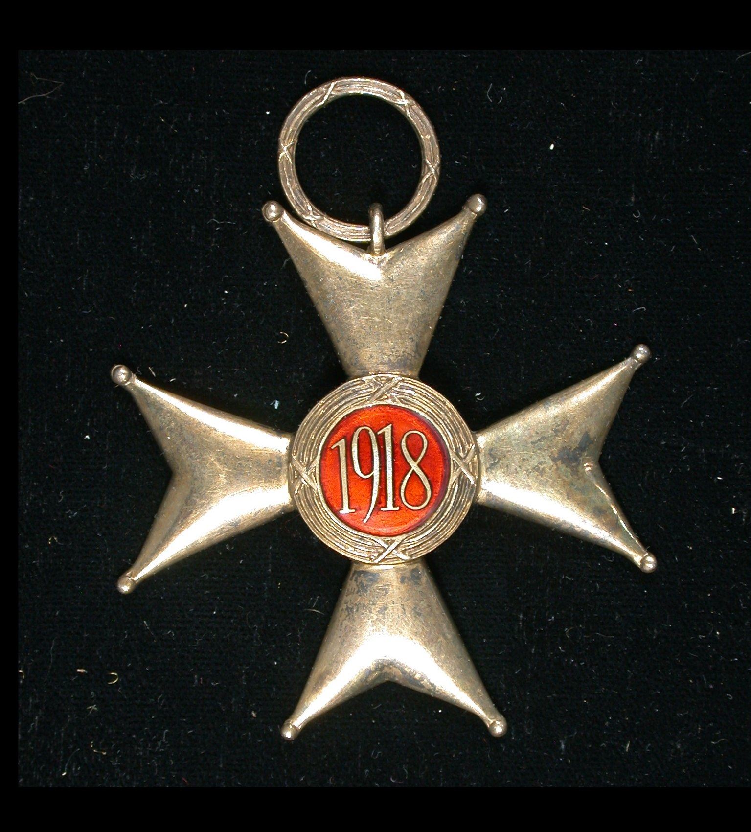 An order of Polonia Commander's neck badge in Silver with gilt and enamel, 1918 dated reverse, 57mm, without ribbon, a refined example with rounded, full-winged eagle.