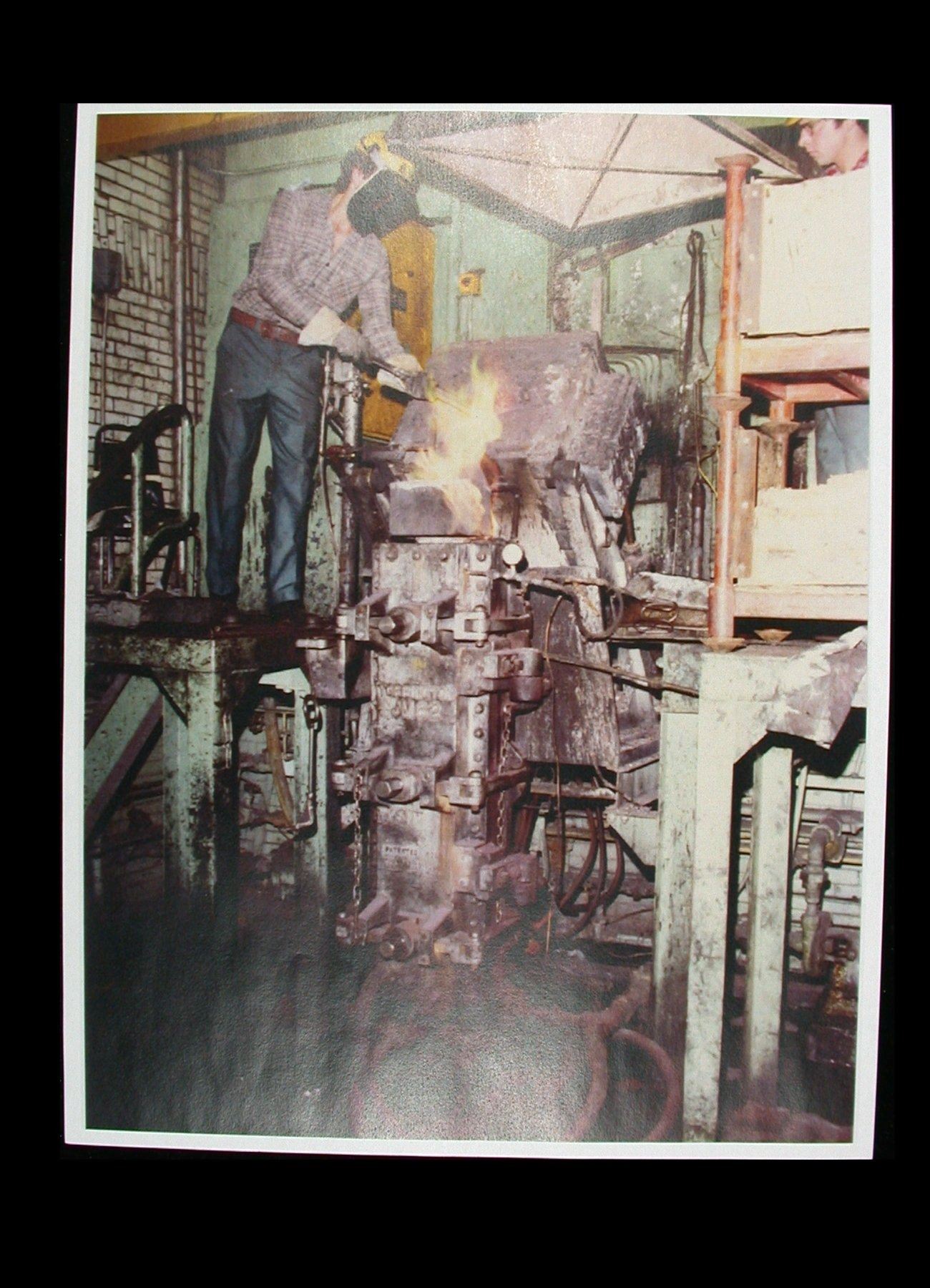 A 60mm bronze medal with mirrored fields, presented to a member of the Royal Canadian Mint's production staff for 35 years service. Housed in black RCM case, and accompanied by an original long-sleeved RCM-issued green shirt (Canadian-made, by SC Walker), as worn by plant employees in the 1980's. Also includes a trio of 8x10" colour photocopy prints of coin blank production inside the Mint, one of which features a pair of employees wearing the same issue of shirt. A unique lot for any serious collector of RCM memorabilia on a couple of fronts: the first example of this medal design we have seen or handled, and almost certainly one of the only surviving staff shirts from this era. NOTE: retiree's name (engraved on the medal front) has been obscured in our image.
