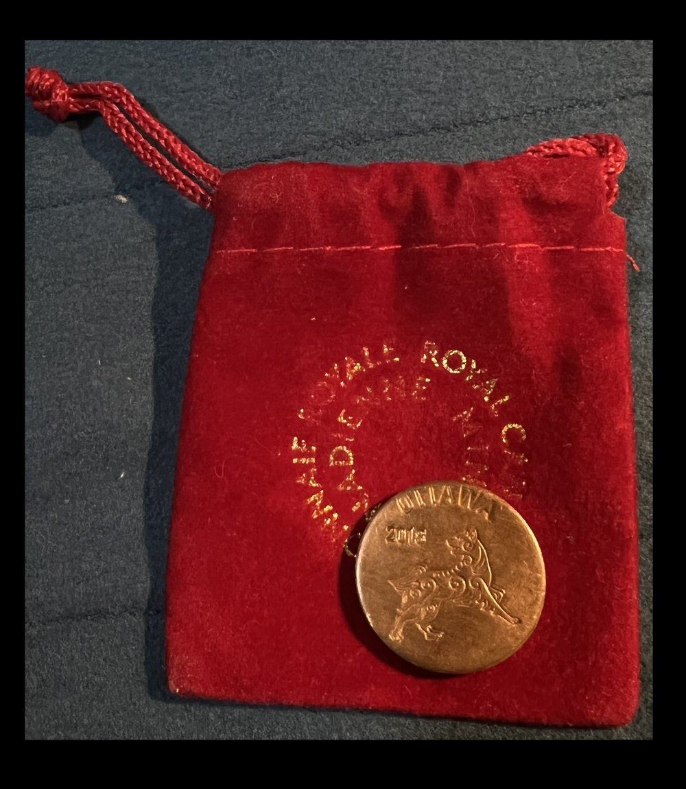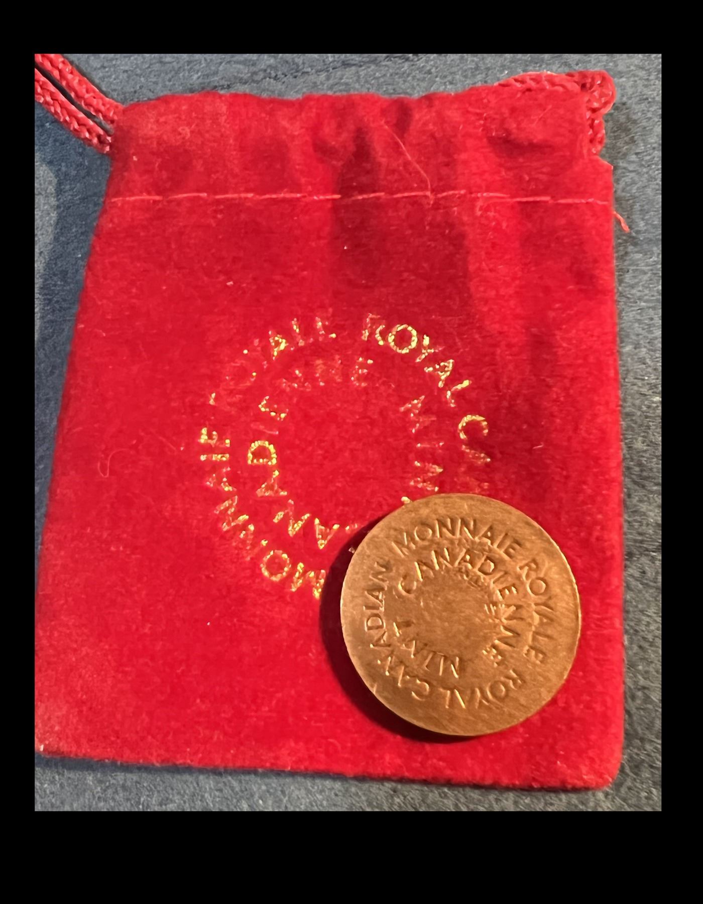 A 2005-dated 28mm copper-nickel "Maple Leaves" Token from the Royal Canadian Mint, Penny design reverse, Obv: RCM logo at center, "Royal Canadian Mint" around circumference in both English and French. Offered together with a 21mm copper Year of the Dog "strike-your-own" token of 2018, "Ottawa" at top above stylized dog. (Lot of 2 tokens)