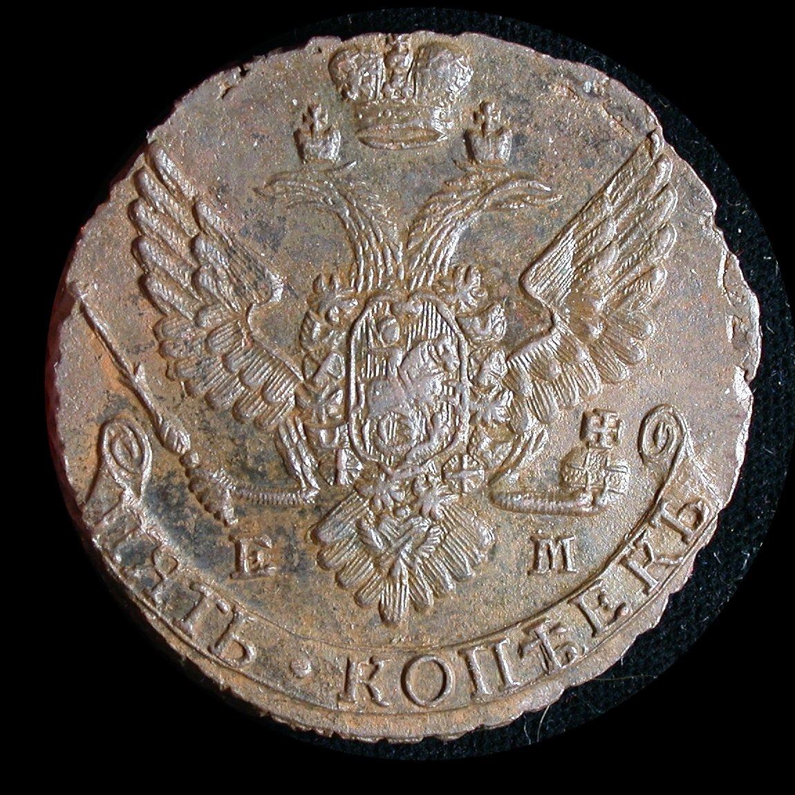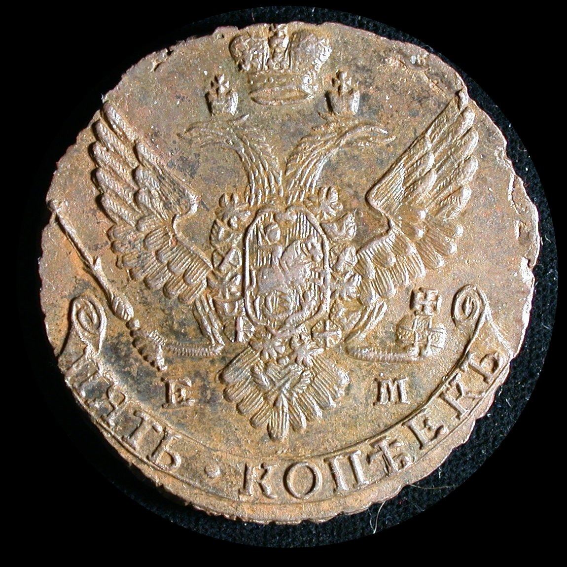Russian Empire, an impressive 1789-EM Five Kopeks of Catherine II (KM.59.3), UNC and virtually as-struck with sharp detail and some doubling of date. Reticulated edge-design remains sharp and well-defined. An excellent type-piece for this impressive bronze crown series, and likely to generate some energetic bidding in our current market