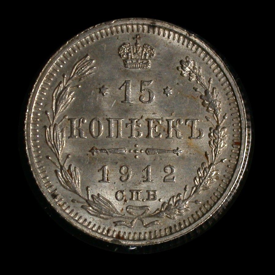 A silver 15 Kopecks of 1912-ЭБ (KM.21a.2), lightly-toned AU with sharp detail and nice milky lustre