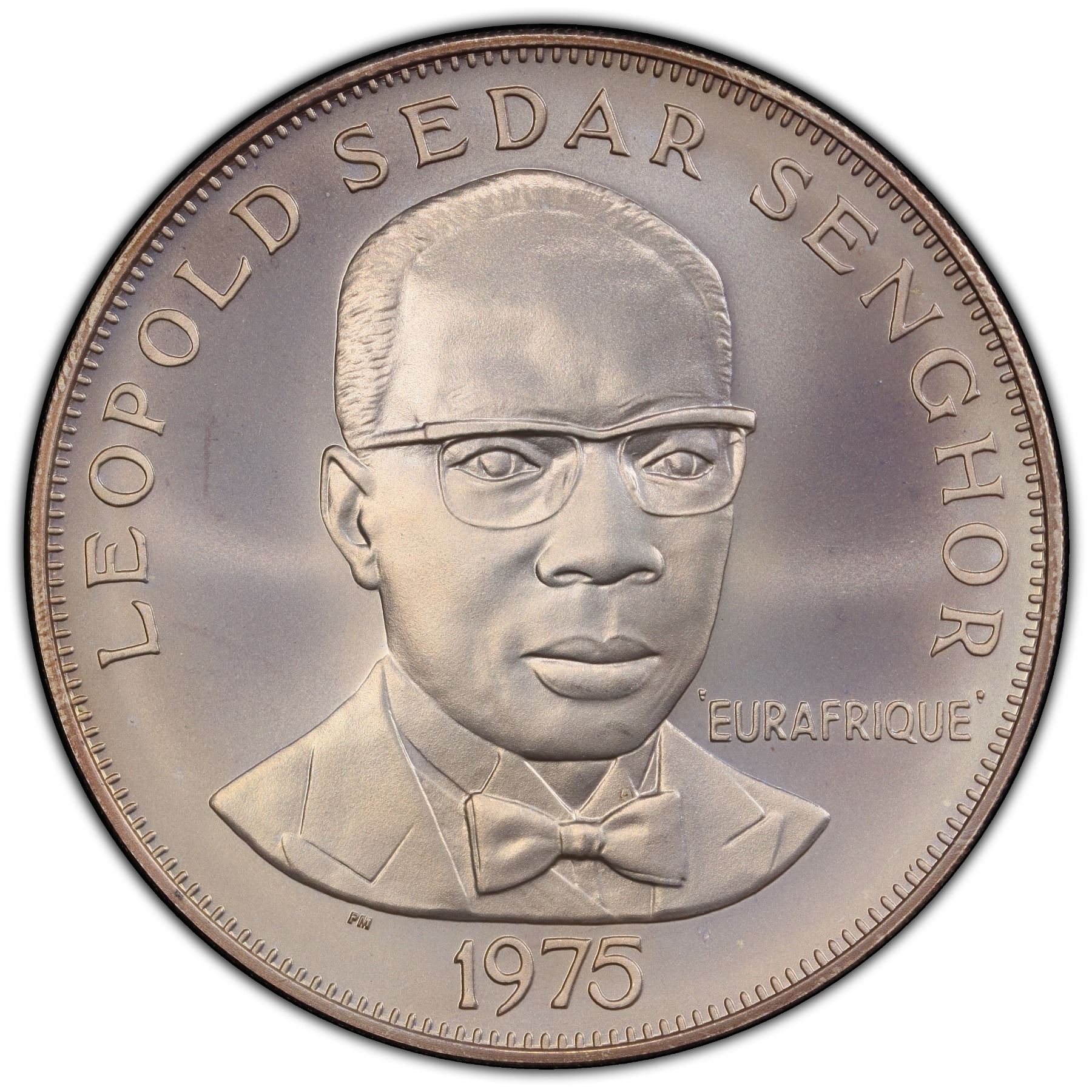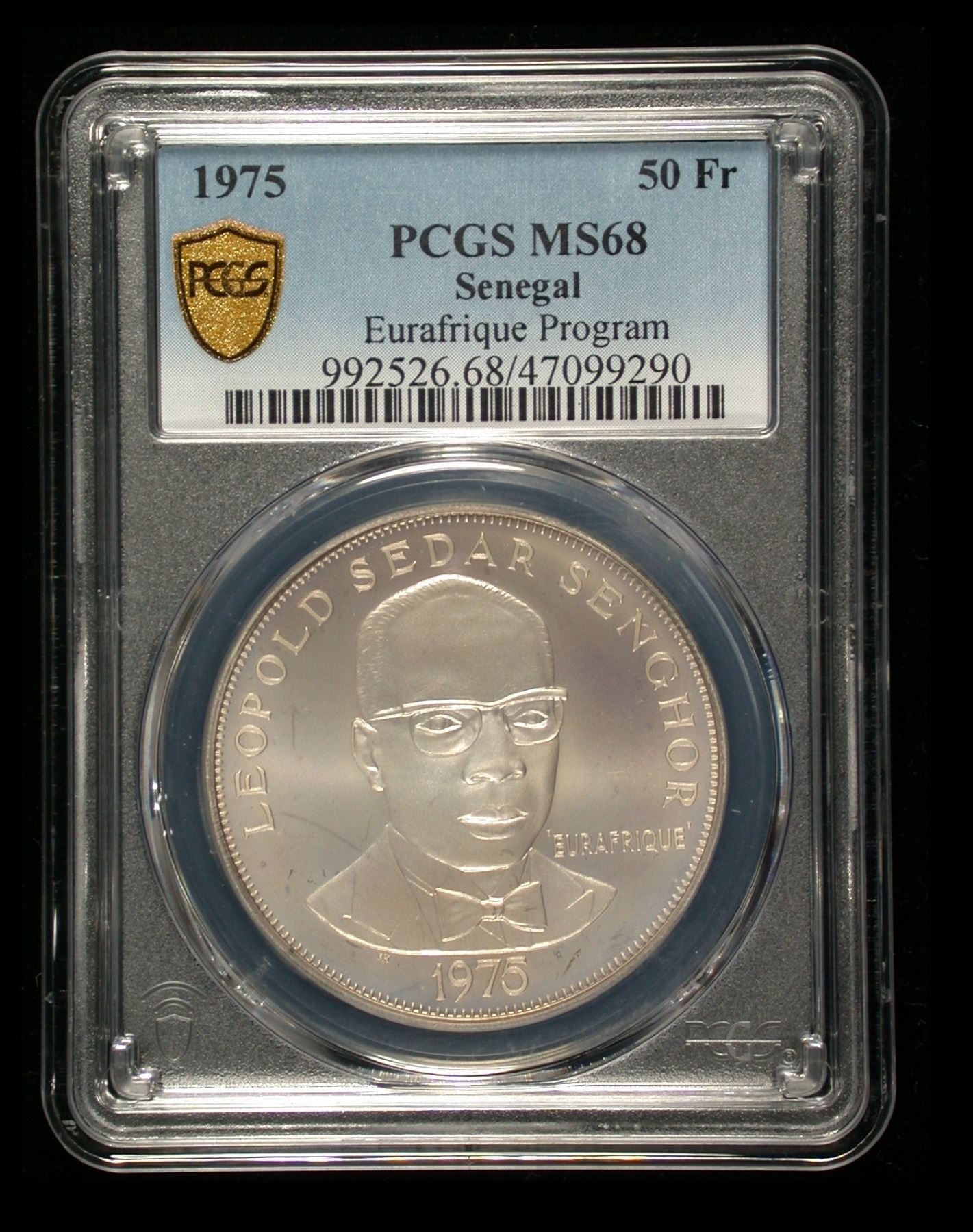 Senegal 1975 Fifty Francs "Eurafrique Program", Sailboat (KM.5), PCGS MS-68 and a nice matte-finished Silver crown