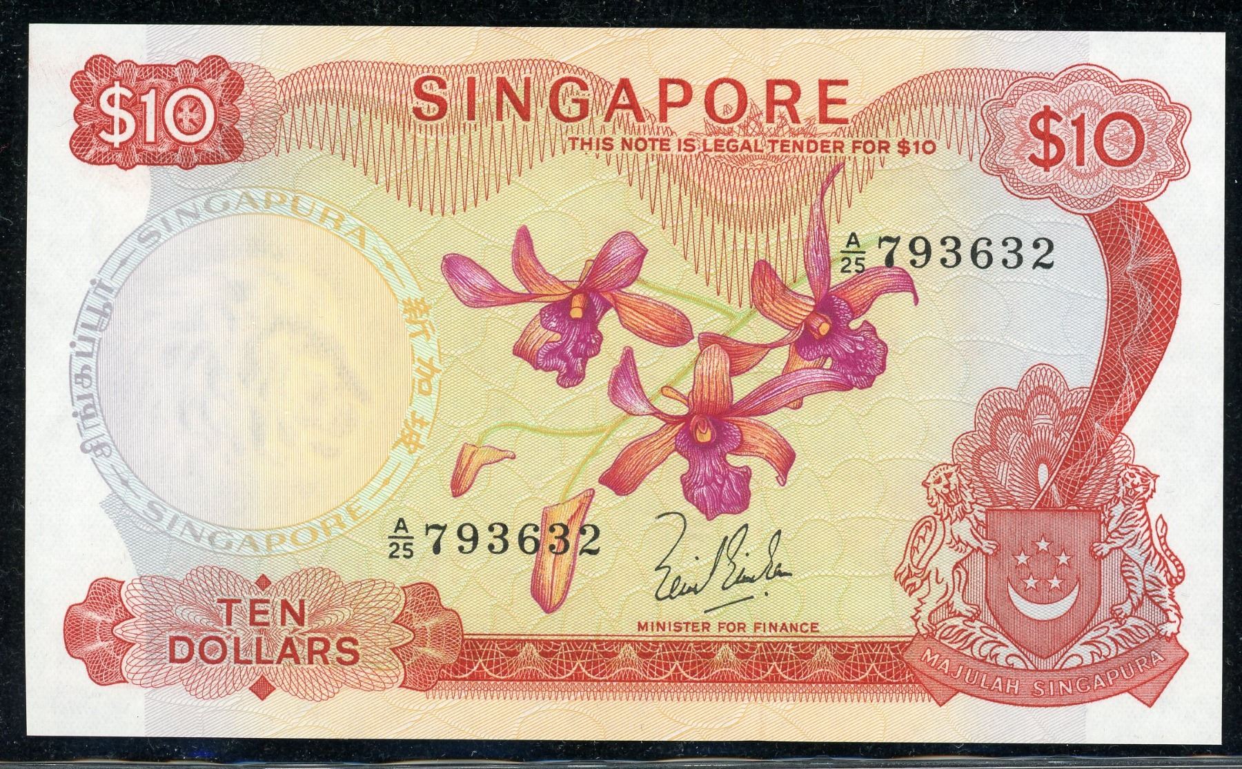 A Ten Dollar note of Singapore, 1967 issue (P.3a), #A/25 793632, fresh AU