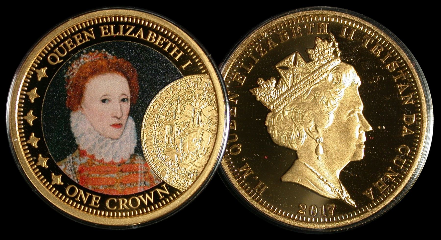 An impressive collection of 72 commemorative Crown coins from Tristan Da Cunha, comprised of 8-coin collections housed in attractive cherry-finished wooden presentation cases. Consists of: (1) 70th Anniversary of WWII Victory, 2015-16, in gold-plate with small multi-coloured enamelled flags, etc., themes including Churchill, Royal Family on balcony, etc. (2) Queen Elizabeth's Crowning Moments, 2014-15, in gold plate with full-colour images on reverse including Queen's Wedding, Audience with Pope John Paul II, and Royal Family on balcony for VE Day, etc. (3) World's Greatest Naval Battles, a set of Dollar coins issued for Tuvalu in 2017, gold-plated and all depicting ships including Battles of Trafalgar, Tsushima, and Jutland, etc. (4) 75th Anniversary of D-Day, a medallic-issue in Silver Plate with sepia photo-images on reverse of battles and/or soliders involved, and common obverse battle-map for Operation Overlord (note: all medalions in this set have imbedded spot of sand from Normandy Beach!). (5) WWII Bombers Collection, in Silver plate with depiction of aircraft on each including B-17 Flying Fortess, Lancaster and A -29 Hudson, etc. (6) Fighters of WWII, A One Dollar Set for Tuvalu in Silver Plate, and including Spitfire, Hellcat, and P-51 Mustang, etc. (7) Historic British Sovereigns, in gold-plate with full-colour portraits of classic English Kings & Queens including Victoria, James I, George III and Elizabeth II. (8) 90th Birthday Imperial Crown collection, in gold-plate with full-colour reverse photos of Queen Elizabeth in her various Crowns and Tierras. (9) Legendary Shipwrecks, 2017 in gold-plate, each with colour image of a ship on reverse including Lusitania, Titanic, and - most interestingly - the Edmund Fitzgerald. Total of 72 Crown coins/medalions, in 9 different cherry-wood cases (minor nicks and scuffs to these), with huge original issue price of $3,600+