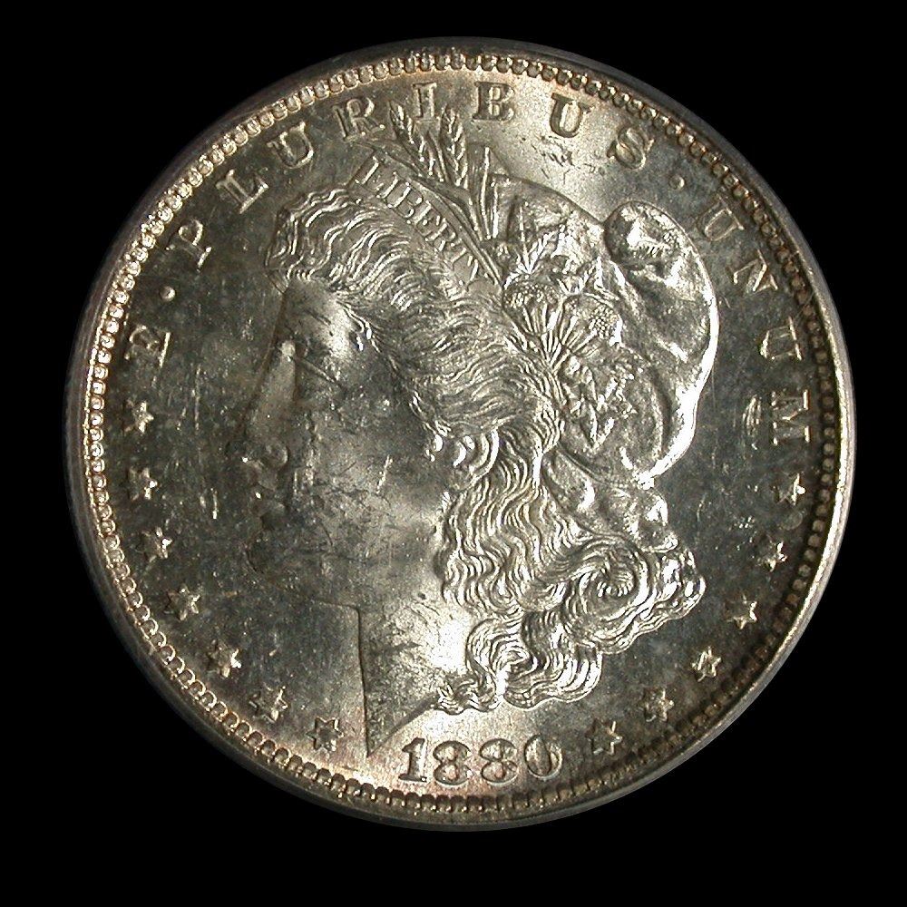 An 1880-S Morgan Dollar, PCGS MS-61 with nice milky white lustre, and some golden toning around rims.
