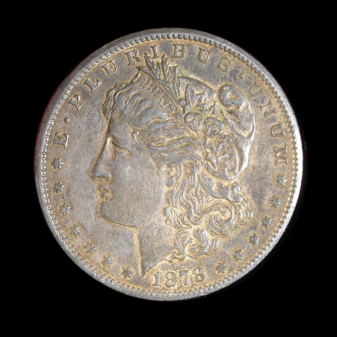 An 1878-CC Morgan Dollar, Carson City Mint, nicely-toned VF-30 with a tiny reverse rim-nick that does not detract.