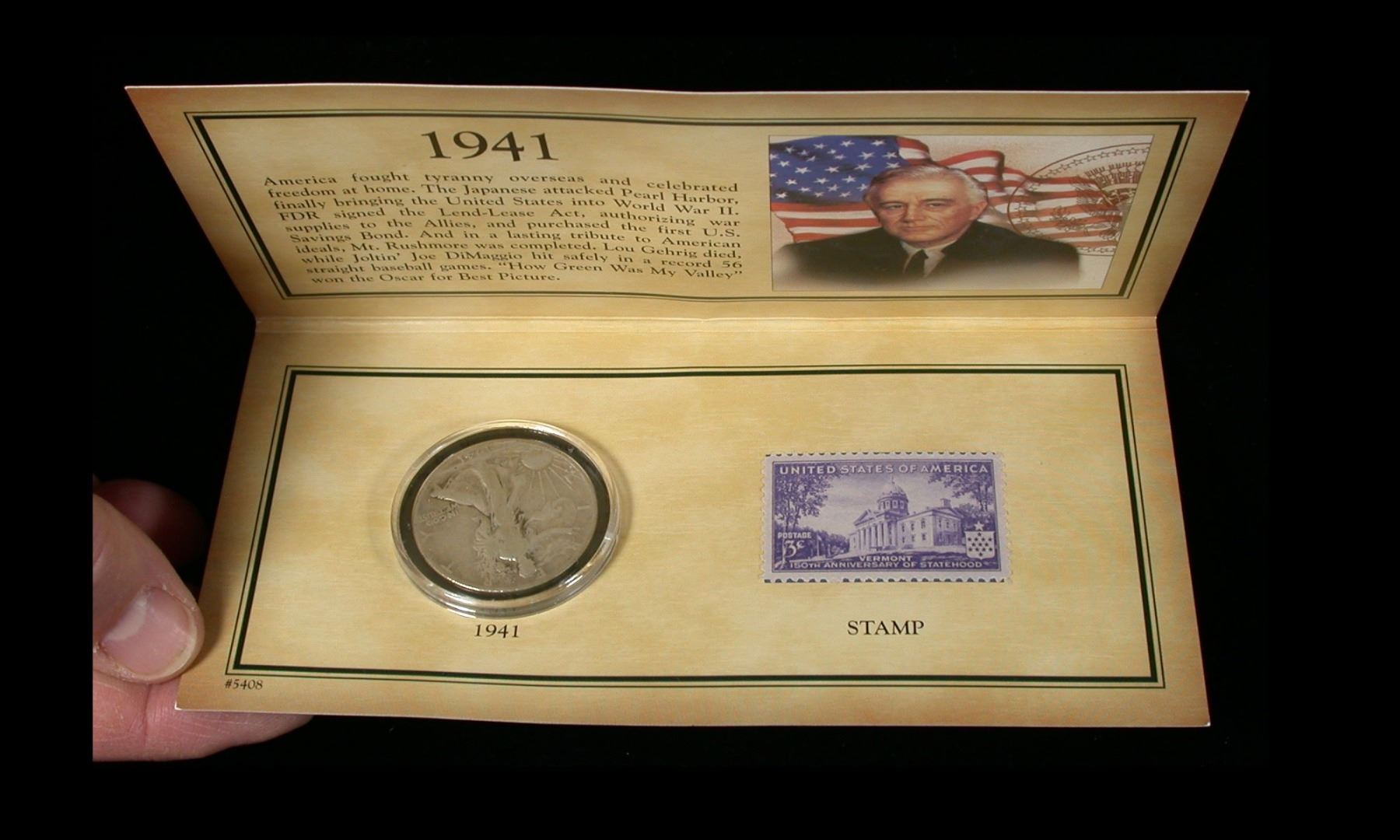 A lot of 11 "Walking Historic Liberty" sets, each consisting of a folder containing an encapsulated Walking Liberty Half Dollar, together with a U.S. Postage stamp of the same year/era, as well as a historic detailing of the events that occurred in the year. Includes: 1934, 1935, 1937, 1938, 1939, 1941, 1942, 1943, 1944, 1945, and 1947, with all Silver halves in typical circulated condition. A neat collection for the Wartime history enthusiast. (Lot of 11 Coin/stamp folders)